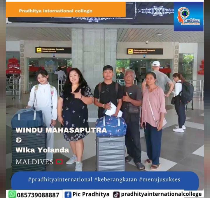 • Selamat Datang di Website Pradhitya International College, Tabanan, Bali.>>>>>><<<<< Together We Achieve A Brillant Future <<<>>> Tgl. 20 dan 25 Nopember 2023, PIC Pradhitya memberangkatkan 6 orang kandidat ke Maldive. Selamat kepada : Rivaldi, Darma Adi Yoga, Puspita, Rini, Widya dan Wina. Salam Sukses