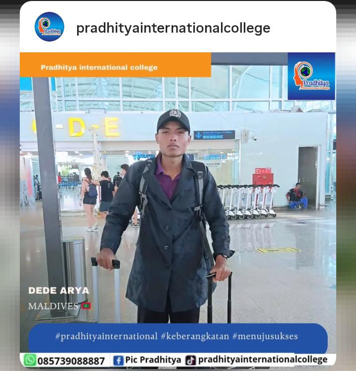 • Selamat Datang di Website Pradhitya International College, Tabanan, Bali.>>>>>><<<<< Together We Achieve A Brillant Future <<<>>> Tgl. 20 dan 25 Nopember 2023, PIC Pradhitya memberangkatkan 6 orang kandidat ke Maldive. Selamat kepada : Rivaldi, Darma Adi Yoga, Puspita, Rini, Widya dan Wina. Salam Sukses